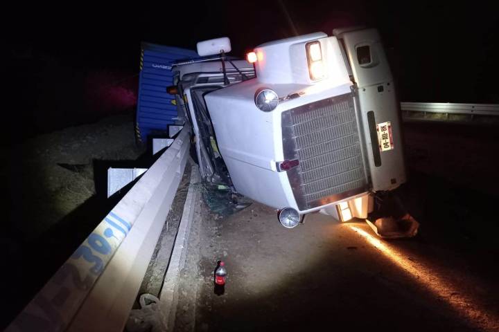 La volcadura del camión se registró la madrugada de este viernes, cuando automovilistas alertaron a los paramédicos de Rescate.