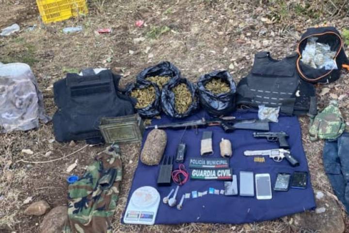 NOTICIAS 15/01/2023SSP desmantela campamento clandestino con armas, más de 4 kilos de droga, artefacto explosivo y equipo tácticoComo parte de los distintos trabajos para localizar y desmantelar campamentos clandestinos; en el municipio de Jacona, los elementos de la Secretaría de Seguridad Pública (SSP), aseguraron e incineraron un asentamiento con un artefacto explosivo, así como dos armas largas, 4.5kg de marihuana, siete envoltorios de metanfetamina, seis cartuchos y equipo táctico.