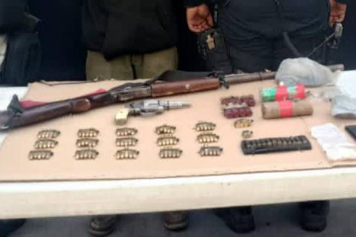 NOTICIAS 07/01/2023Capturan SSP, Sedena y GN, a hombre con artefactos explosivos, armas y droga.Personal de la Guardia Civil en coordinación con la Guardia Nacional (GN) y la SecretarÃa de la Defensa Nacional (Sedena), aseguró a una persona del sexo masculino, en posesión de dos armas de fuego, dos artefacto explosivos y droga.