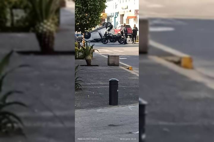 Dos vehÃculos protagonizaron un aparatoso choque y uno de ellos quedó volcado, hecho que ocurrió en Morelia y el cual sólo dejó daños materiales, indicaron fuentes policiales.