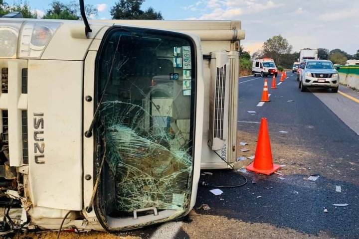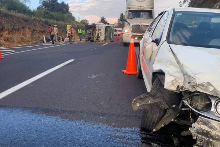 El aparatoso accidente se registró este martes en el kilómetro 68 del tramo carretero Pátzcuaro-Uruapan. Se supo que uno de los automotores involucrados es un camión Isuzu, de la empresa Lala, el cual terminó volcado.