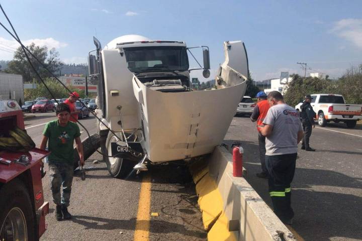 Un camión revolvedora se estrelló contra un muro de contención central ubicado en la carretera Morelia-Pátzcuaro. Afortunadamente no hubo lesionados, comentaron autoridades policiales.