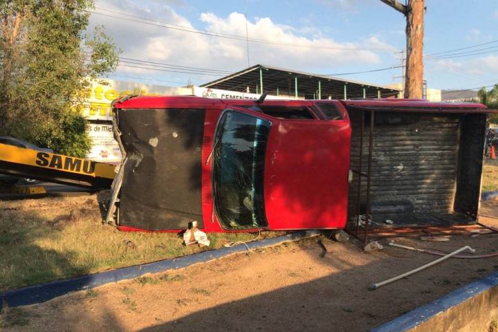 Una camioneta volcó tras chocar contra una luminaria ubicada en el Periférico Paseo de la República, frente a la colonia El Mirador del Punhuato, al oriente de Morelia, comentaron autoridades policiales, las cuales agregaron que dos masculinos resultaron lastimados.