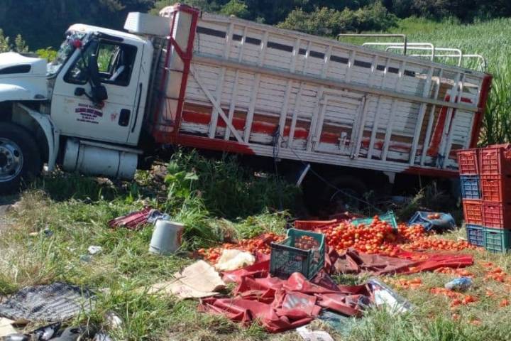 Un camión cargado de jitomate se volcó sobre la carretera Tacámbaro-Tavera del municipio de Turicato, durante la mañana de este lunes situación que genera perdidas materiales por el daño a la unidad y mercancía.