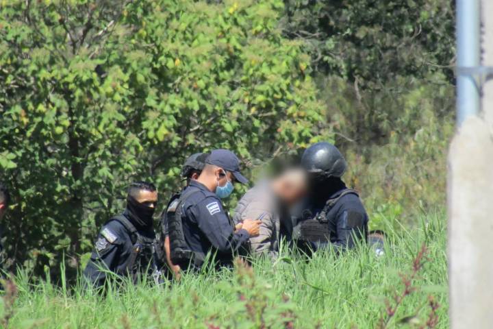 Tras una persecución e intercambio de disparos elementos de la Policía Municipal y de la Guardia Civil aseguraron a dos presuntos delincuentes que viajaban a bordo de una motocicleta con reporte de robo y en posesión de un arma de fuego, uno de los implicados resultó herido y fue hospitalizado.