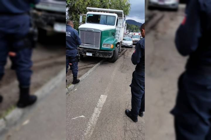 La localidad de Curungueo fue escenario de un aparatoso accidente en el que un camión de carga tipo volteo se impactó contra un auto compacto en el que viajaba una familia, situación que por fortuna no dejó heridos, pero sí daños materiales.
