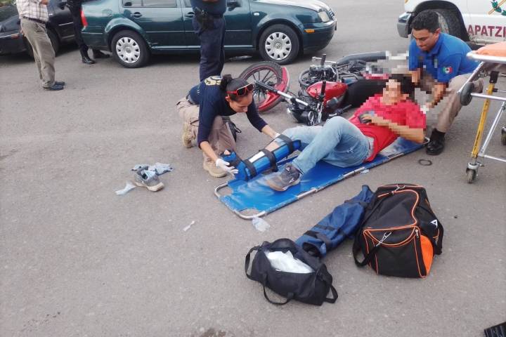 La tarde de este lunes, un motociclista se impactó por alcance con un automóvil, en la ciudad de Apatzingán, Michoacán; el choque dejó como resultado un lesionado.