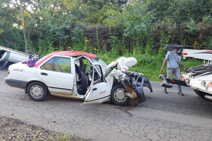 Un taxi de la línea Chupio y un vehículo tipo Jetta de uso particular, chocaron de frente a la altura del punto conocido como El Rosal, en la carretera Tacámbaro - Yoricostio, situación que dejó ocho personas lesionadas.