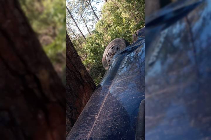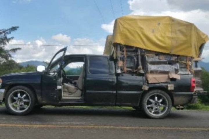 Una camioneta de la marca Toyota tipo pickup de las conocidas Tacoma, color azul, con placas estadounidenses, fue encontrada volcada, estrellada contra un pino y abandonada en la comunidad de La Blanca, a un costado de la carretera Tacámbaro-Tecario.