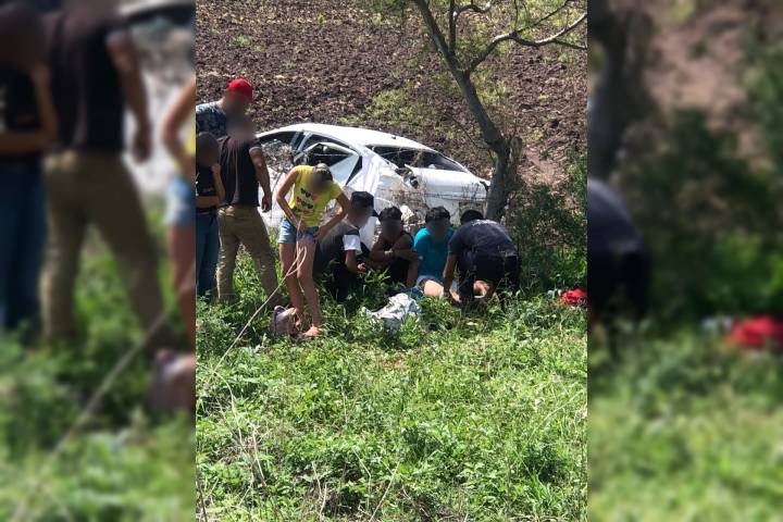 El accidente ocurrió durante la tarde de este sábado, a la altura de la desviación a Zirándaro, donde un auto compacto de color blanco, terminó totalmente destrozado en unos terrenos de siembra,