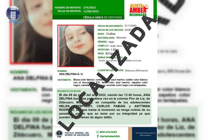 NOTICIAS 12/06/2022Localiza FGE a cuatro adolescentes reportados como desaparecidos en Zitácuaro; desactiva Alerta Amber