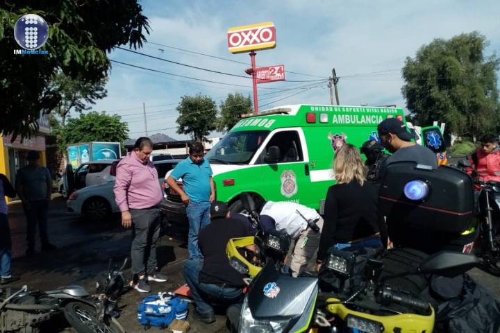 Un joven motociclista, sufrió diversas lesiones, tras ser impactado por un automóvil, sobre la avenida Latinoamericana, quien fue auxiliado por paramédicos del Cuerpo de Rescate.
