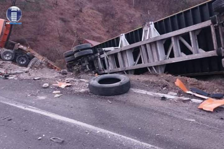 Un tráiler de Petróleos Mexicanos, cargado con combustible se estrelló contra otro tractocamión cargado de contenedores.