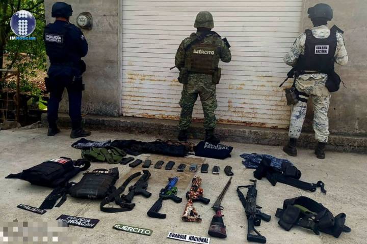 NOTICIAS 27/05/2022En operativo interinstitucional, se decomisaron 5 armas largas, equipo táctico y vehÃculos en UruapanLabores para la disuasión del delito y garantizar el orden público en esta zona de la entidad, permitió a los elementos de las secretarÃas de Seguridad Pública (SSP), y de la Defensa Nacional (SEDENA), asà como de la Guardia Nacional (GN), asegurar dos vehÃculos ?uno con reporte de robo-, donde se localizaron 5 armas largas y equipo táctico.