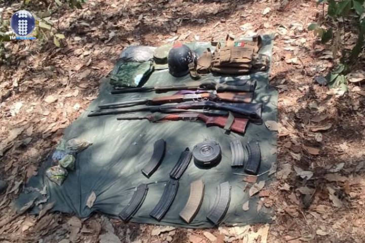 NOTICIAS 01/05/2022SSP, Sedena y GN destruyen campamento de célula delictiva, en Hidalgo A través de una movilización conjunta entre los elementos de las secretarías de Seguridad Pública (SSP), de la Defensa Nacional (Sedena), y la Guardia Nacional (GN); se detectó y desactivó un campamento al parecer utilizado por una célula delictiva; en el sitio fueron localizados cuatro armas de fuego, cinco vehículos con reporte de robo, una granada de fragmentación cartuchos y equipo táctico.