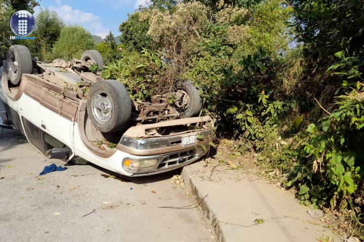 Una camioneta término volcada de manera en la primera manzana de la colonia Nicolás Romero en el municipio de Ziracuaretiro.