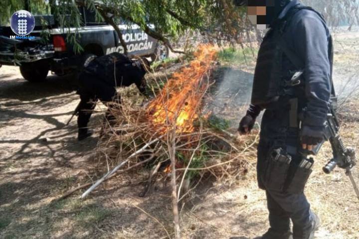 Los oficiales de la PolicÃa Michoacán realizaban tareas de vigilancia y disuasión del delito en las inmediaciones de la localidad de Atotonilco en este municipio, cuando detectaron sobre un predio diversas plantas con una altura ... Ver más...