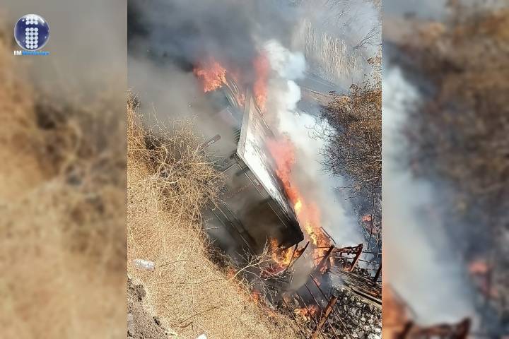 Según lo que narró el conductor a las autoridades, otro tráiler lo sacó del camino y al llegar al fondo de la pendiente salió y así pudo evitar que las llamas que prendieron su unidad lo alcanzaran.