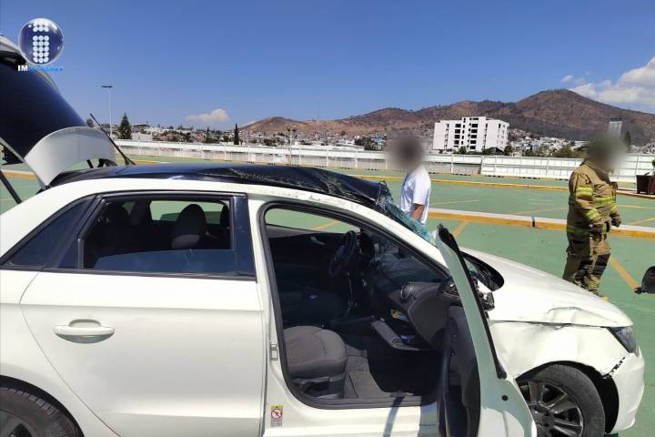 NOTICIAS 16/03/2022Vuelca auto en estacionamiento de Espacio Las Américas