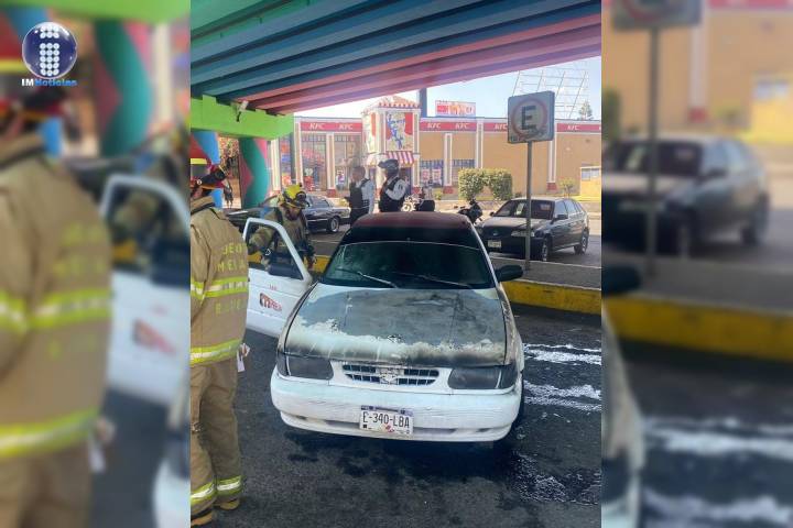 Unos bomberos evitaron que un vehículo de alquiler terminara completamente calcinado al incendiarse cuando circulaba en el distribuidor salida a Charo, al oriente de Morelia.