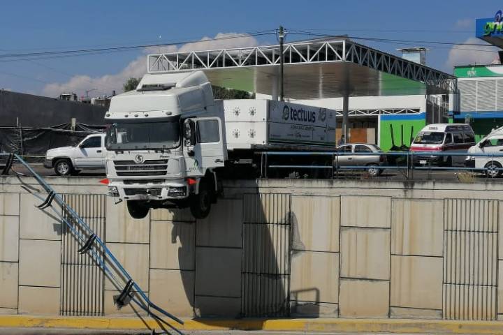 NOTICIAS 08/02/2022Camión de carga queda "volando" cerca del distribuidor vial de salida a Quiroga