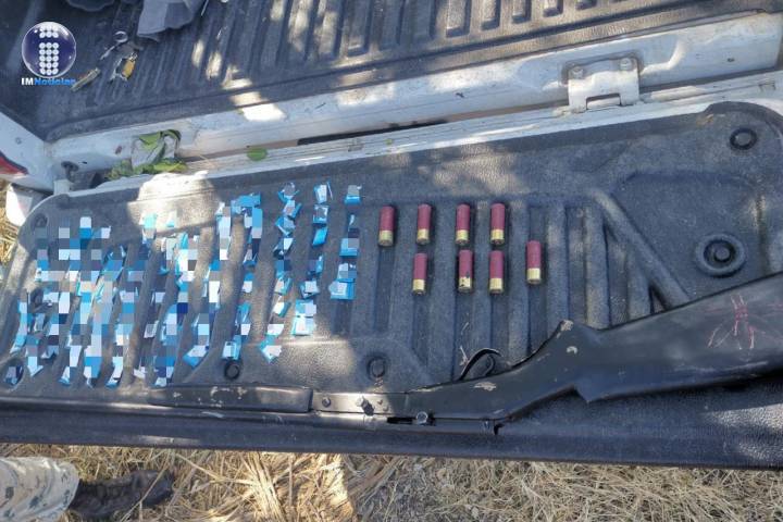 NOTICIAS 14/01/2022En persecución, SSP, Sedena y GN detienen a uno en posesión de arma de fuego y 103 envoltorios de droga Derivado de una persecución, los elementos de las secretarÃas de Seguridad Pública (SSP) y de la Defensa Nacional (SEDENA), asà como de la Guardia Nacional (GN), detuvieron a una persona del sexo masculino, en posesión de un arma de fuego, 103 envoltorios que contenÃan sustancia granulada, al parecer metanfetamina y un vehÃculo con reporte de robo.