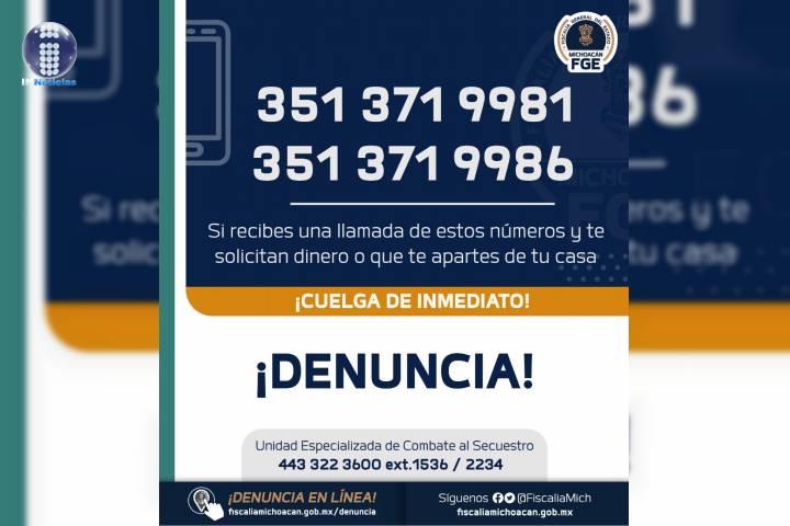 NOTICIAS 20/10/2021Localiza Fiscalía General a una mujer víctima de extorsión virtual en TangamandapioResultado de investigaciones realizadas por la Fiscalía General del Estado de Michoacán (FGE), permitieron asegurar ilesa a una mujer víctima de extorsión virtual en el municipio de Tangamandapio.