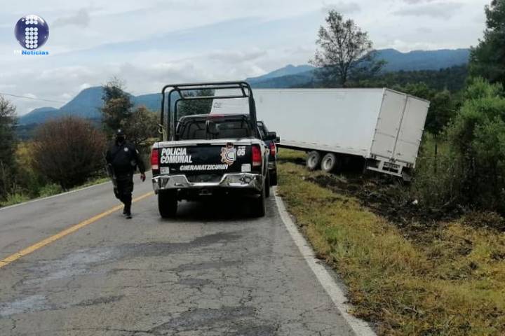 NOTICIAS 05/10/2021Camión se sale del camino en Cherán Un tráiler se salió del camino en el municipio de Cherán, lo cual generó como consecuencia que se movilizaran las unidades de la Policía Michoacán para auxiliar al conductor y revisar las consecuencias del accidente.