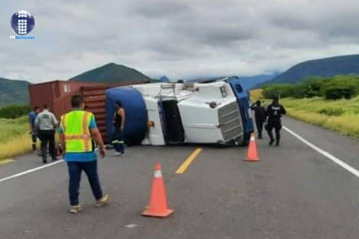 Datos obtenidos por este medio el incidente fue sobre el kilómetro 169+100 y la unidad involucrada es un Kenworth, 2018, de colores blanco, azul y rojo, con placas 44AE5W, del estado de México que se salió de control.