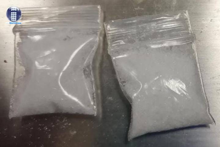 Elementos de la Secretaría de Seguridad Pública (SSP), aseguraron a una persona del sexo masculino posesión de varios envoltorios que contenían una sustancia granulada con características propias de la metanfetamina y una motocicleta que cuenta con reporte de robo.