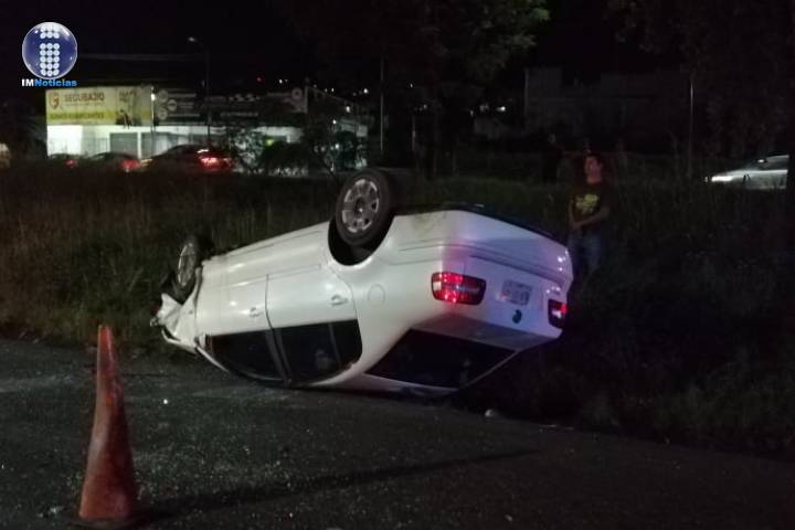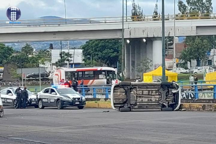 Un automóvil volcó y se impactó contra otros dos vehículos, percance que se registró la noche de este jueves sobre el Periférico Paseo de la República, al poniente de Morelia.
