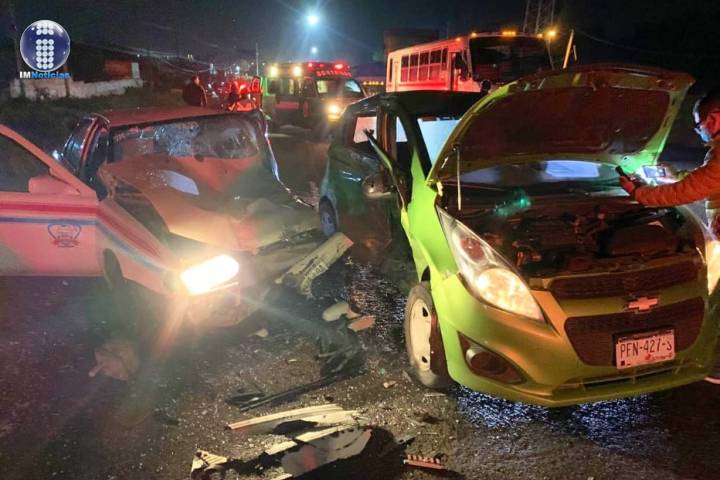Aparatoso choque de taxi y auto deja tres lesionados en Chaparaco