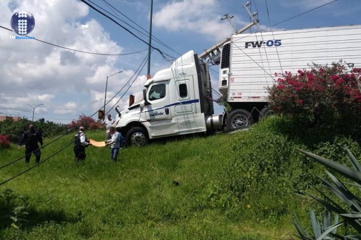Un tractocamión chocó contra un poste de concreto que sostenía un transformador de luz de la Comisión Federal de Electricidad (CFE), esto tras salirse de la carpeta asfáltica en la zona oriente de Morelia.