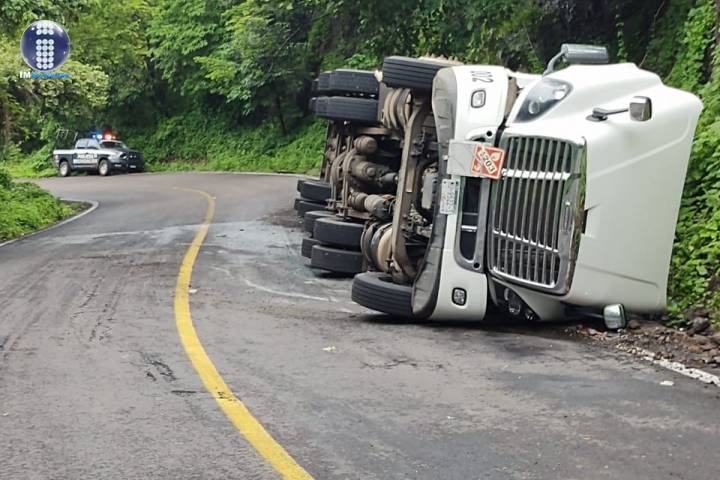 La carretera federal Carácuaro-Huetamo fue escenario de la volcadura de una pipa de la empresa Pemex Maosa, que transportaba gasolina, a la altura de la tenencia Paso de Núñez.