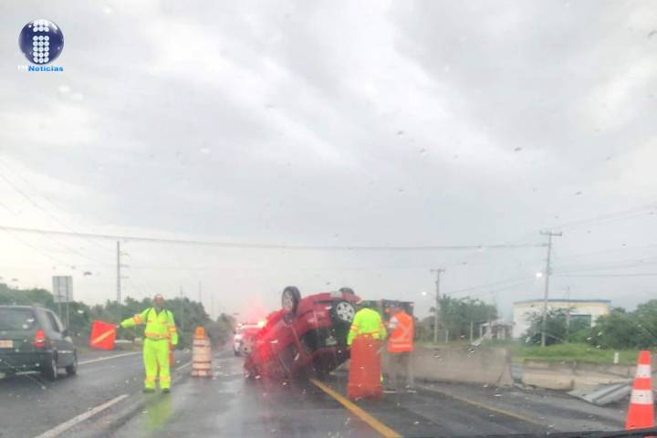 Este viernes una camioneta chocó contra el muro central de la carretera Federal Apatzingán-Cuatro Caminos y después terminó volcada.