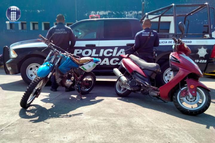 Agentes de la Secretaría de Seguridad Pública (SSP), aseguraron en este municipio dos motocicletas que no cuentan con medios de identificación; hecho registrado en la colonia Trasierra. Personal de la Policía Michoacán efectuaba trabajos operativos en la calle Estado de Nuevo León, cuando ubicó dos vehículos de las marcas Italika y Vento sin placas de circulación, procediendo a inspeccionarlos. Durante las tareas de revisión, los ...