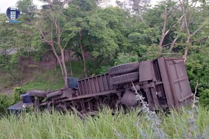 El incidente fue en la curva ubicada en el puente vehicular de la colonia La Orilla donde un camión materialista tipo volteo afiliado a la Confederación Regional Obrera Mexicana (CROM), se salió de la cinta asfáltica y se cayó a una barranca.