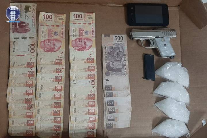 En atención a una denuncia ciudadana, elementos de la Secretaría de Seguridad Pública (SSP), detuvieron en esta ciudad a cuatro personas, quienes se encontraban en posesión de un arma de fuego, y una sustancia granulada con las características propias de la metanfetamina; asimismo, están implicados en el delito de robo. La acción operativa se registró en la calle América esquina con Magnolias de la colonia La Mora, sitio donde los a...