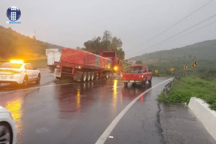 Chofer se duerme y su tráiler choca contra barrera metálica en la Morelia-Salamanca