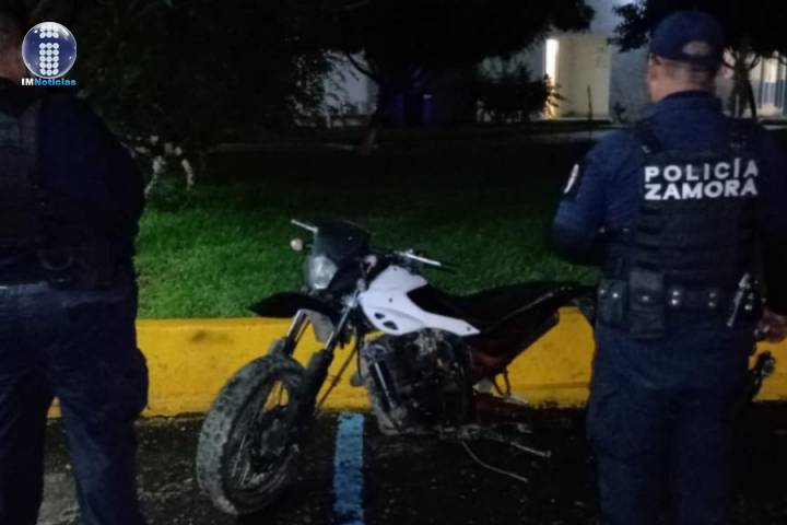 Durante patrullajes de vigilancia en la colonia La Revolución, oficiales de la Policía Michoacán ubicaron la unidad de la marca Italika sin placas de circulación y en aparente estado de abandono en la calle Ferrocarril.