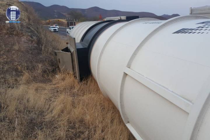 NOTICIAS 07/05/2021Se vuelca tráiler con pipaUn tanque pipa cargado con gasolina se volcó cuando circulaba sobre la autopista siglo XXI, sobre tramo Las Cañas - Infiernillo a la altura del municipio de Arteaga.