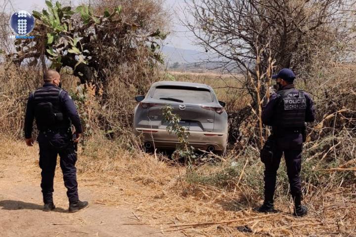En seguimiento a una denuncia, agentes de la Policía Michoacán localizaron la unidad de la marca Mazda en una brecha ubicada en las indicaciones de la localidad El Sabino.