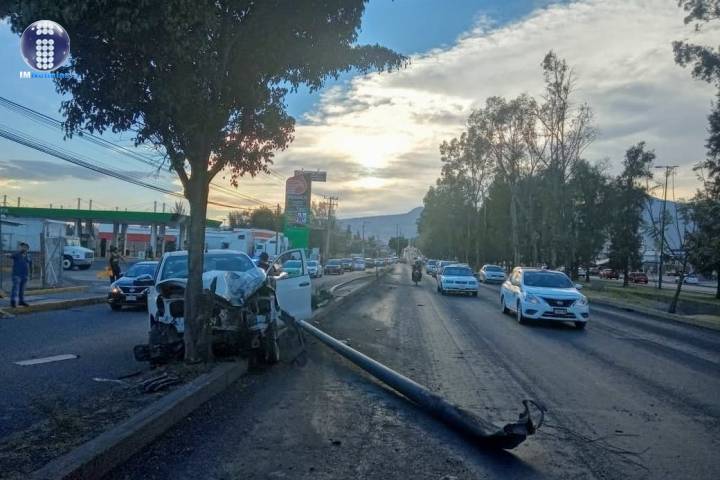 NOTICIAS 05/04/2021Camioneta choca contra poste y árbol en el periférico norte de Morelia Una camioneta se estrelló contra un árbol tras derribar un poste metálico del alumbrado público ubicado en un camellón del Periférico Paseo de la República, en la zona norte de Morelia.