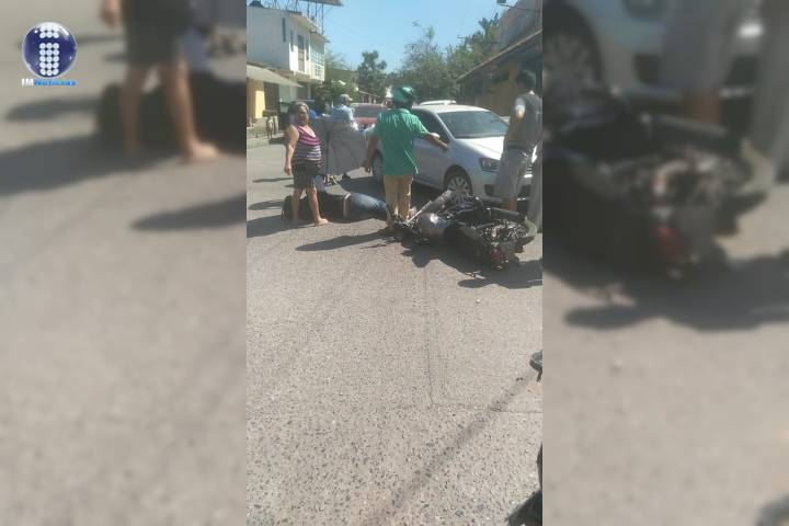 Datos obtenidos por este medio señalan que una unidad del servicio público de Combis arrolló a un motociclista del servicio de Mandadito el cual fue proyectado contra un vehículo particular Atos color azul y luego quedó tirado en el suelo.