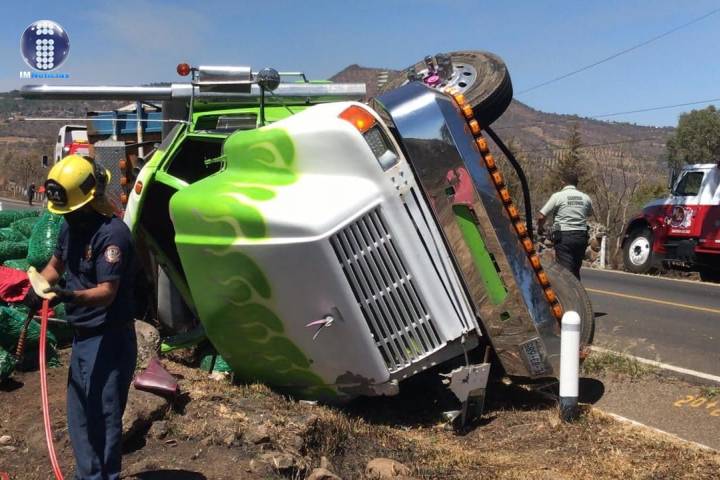 Un camión tipo torton, el cual transportaba varios costales que contenían chiles serranos, volcó sobre la carretera Morelia-Quiroga y sus dos ocupantes resultaron lesionados, según comentaron fuentes policiales y de rescate.