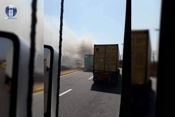 El incidente tuvo lugar en el área del Recinto Fiscalizado de la Administración Portuaria Integral (API) donde un camión que transportaba dos contenedores empezó arder en llamas aparentemente por una falla mecánica.