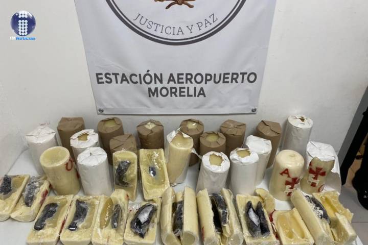 Dentro de unos cirios religiosos estaban ocultos 7 kilos 895 gramos de metanfetamina, los cuales fueron detectados por oficiales de la Guardia Nacional (GN), adscritos a la Dirección General de Seguridad en Carreteras e Instalaciones, esto durante una revisión que aplicaron a una empresa de paquetería ubicada en Ciudad Industrial, al oriente de Morelia.