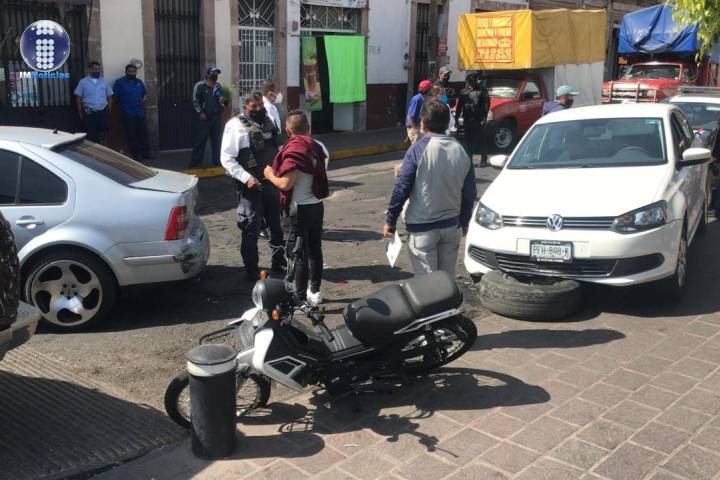 El conductor de una camioneta causó un choque múltiple en el Centro Histórico de Morelia. El hecho dejó varios daños materiales y el presunto responsable fue detenido por la Policía, indicaron contactos allegados al tema.