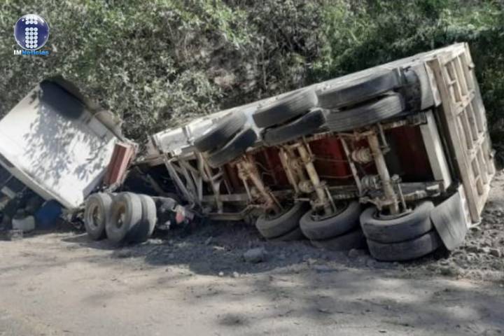 La tarde de este sábado un tráiler "minero", sufrió un aparatoso accidente sobre la carretera Aquila ? Coalcomán sin que por fortuna se registraran víctimas que lamentar, según se supo en la cobertura noticiosa.