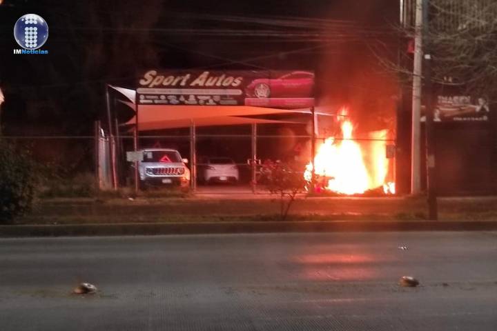 Un vehículo ardió en llamas dentro de un lote de compra venta de coches ubicado en la avenida Camelinas, en la zona sur de la capital michoacana.